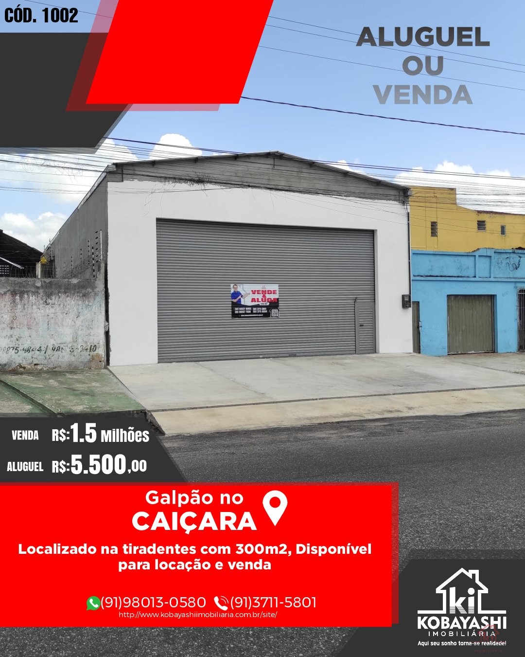 Olá, Gostaria de conhecer este imóvel [Cód.1002] que encontrei na Kobayashi Imobiliária, por favor entre em contato.