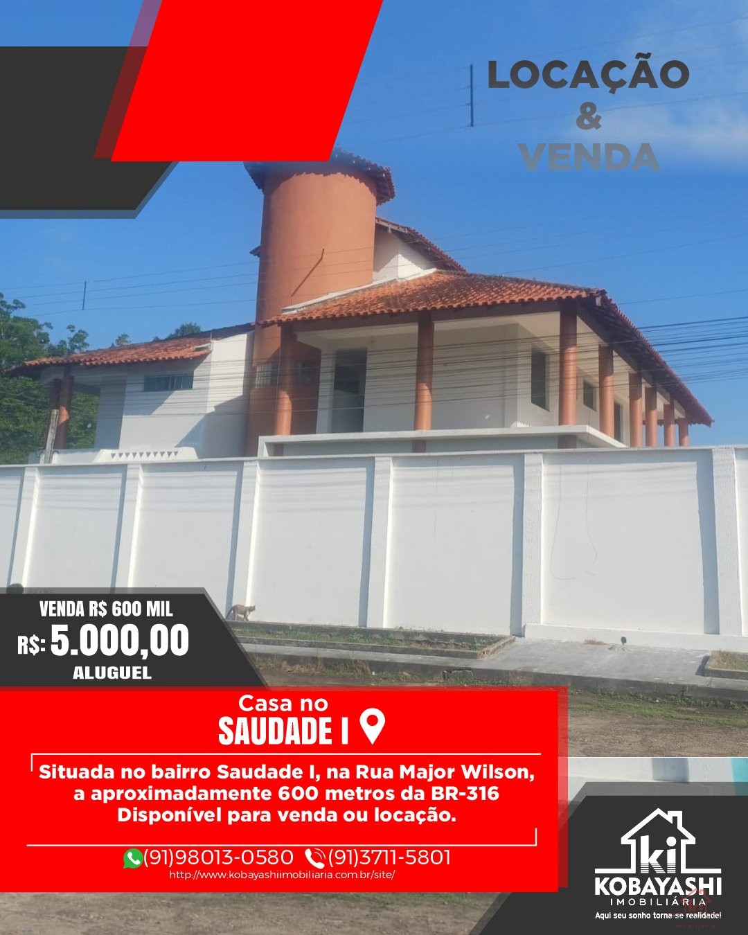 Situada no bairro Saudade I, na Rua Major Wilson, a aproximadamente 600 metros da BR-316, em região consolidada, com grande valorização imobiliária e fácil deslocamento para o centro da cidade.