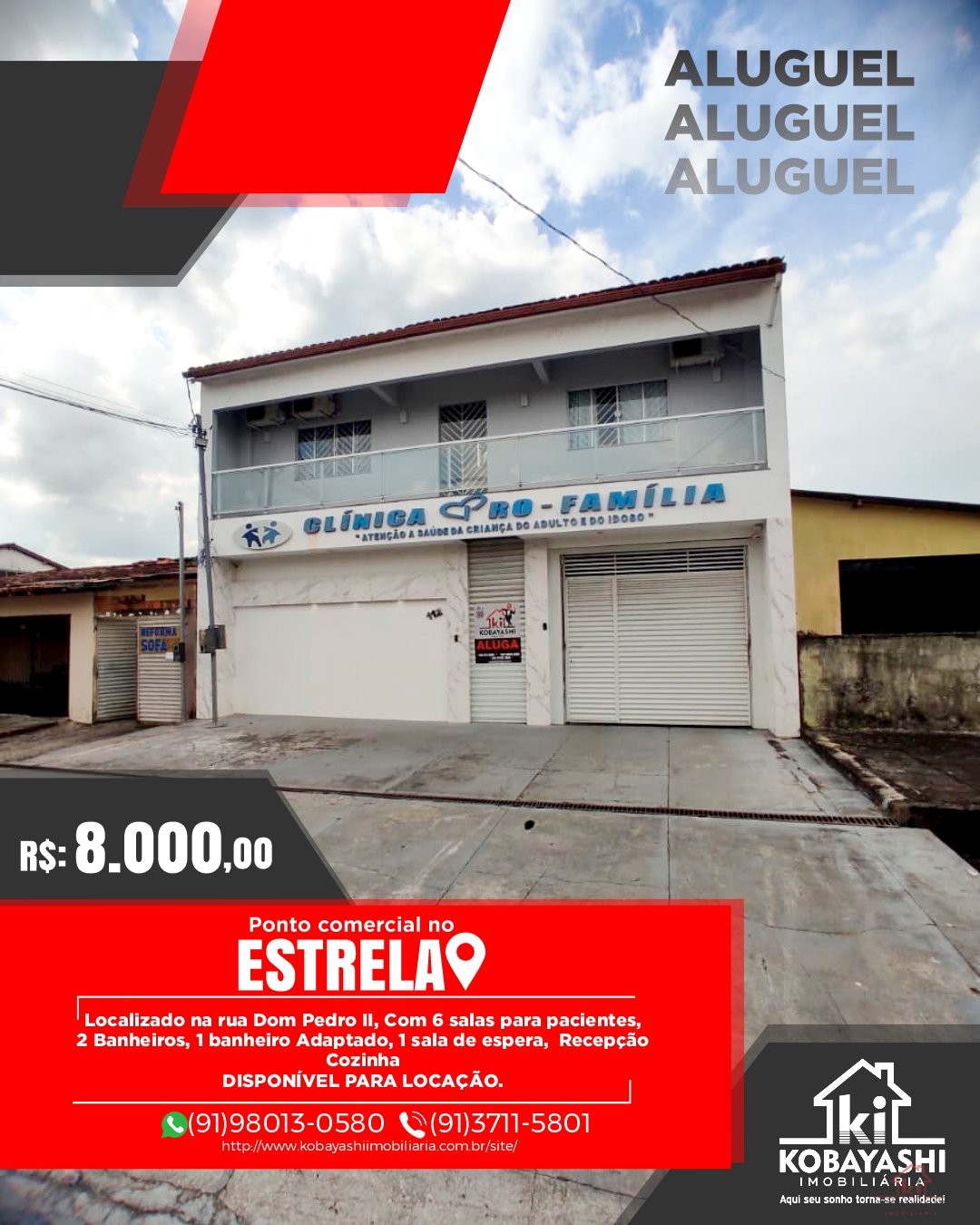 Localizado na rua Dom Pedro II, Com 6 salas para pacientes,